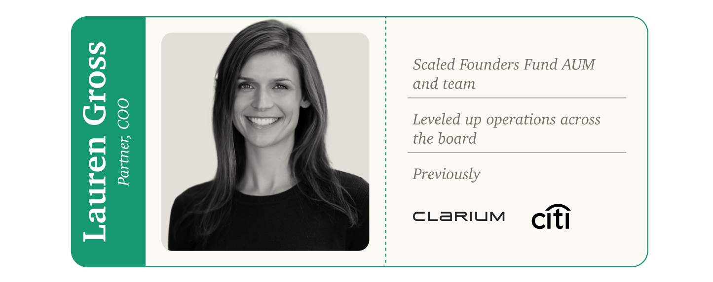 Meanwhile, Gross is Founders Fund’s most important operator. As COO and head of IR, Gross scaled the firm’s AUM into the billions of dollars, staffed its world-class team, and executed Thiel’s vision.