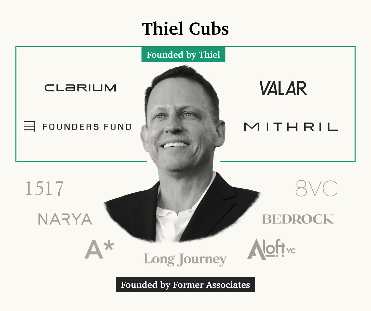 Unlike Julian Robertson’s “Tiger Cubs,” Thiel often co-founded these organizations — making him more partner than backer to his set of “Thiel Cubs.” Of these, Valar and Mithril hold the starring roles.