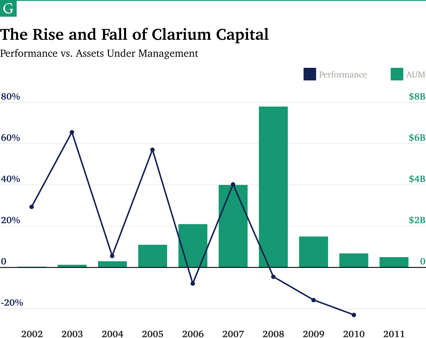They didn’t last. U.S. stocks crumbled to near-historic lows, and oil prices fell with them, erasing Clarium’s gains to leave it down 4.5% on the year. It never regained its footing, falling 25% in 2009 and a further 23% in 2010.