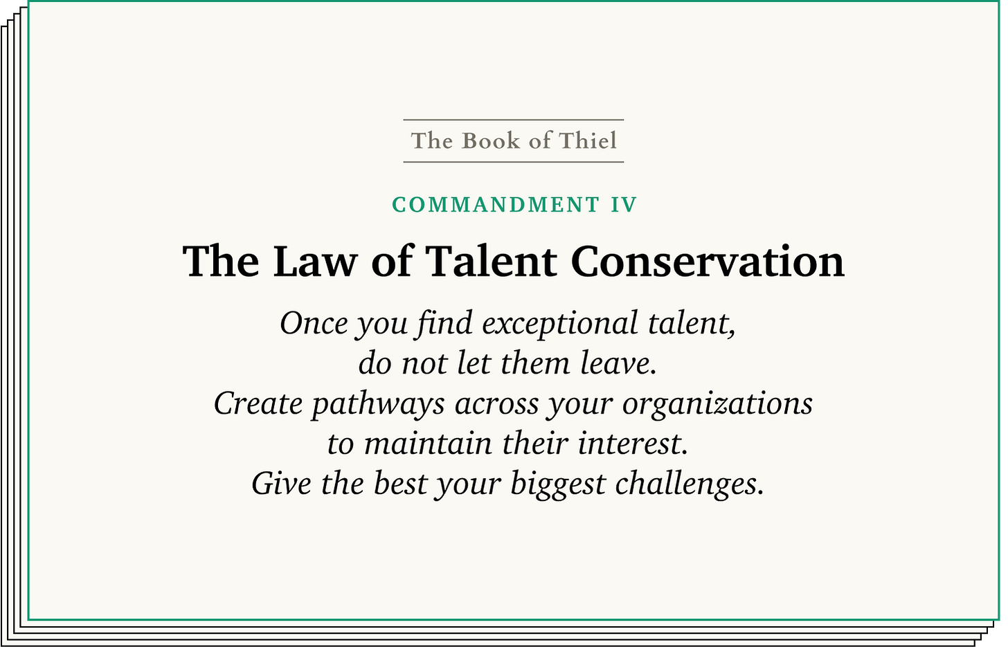 First, more than almost anyone else, Thiel understands the importance of conserving talent. Once he decides someone meets his high bar, once he decides you are special, he is uncommonly proactive in ensuring that person remains in his orbit. Like a sports agent, he seems to understand what each “client” needs to further their career and deliver fulfillment, and then searches for it within his direct network. If an investor wants to experience operational life, they should join Palantir or Anduril; if an operator wants to learn how investors think, they can take a stint at Clarium or Mithril or Founders Fund; if someone is ready to start a firm of their own, why not do it with his backing?
