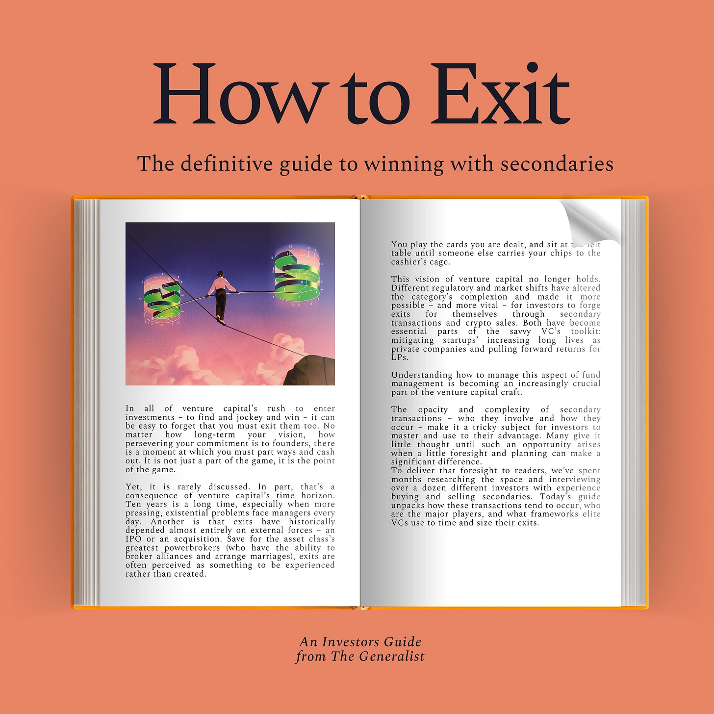 Yet, it is rarely discussed. In part, that’s a consequence of venture capital’s time horizon. Ten years is a long time, especially when managers face more pressing problems daily. Another is that exits have historically depended almost entirely on external forces – an IPO or an acquisition. Save for the asset class’s greatest powerbrokers (who can broker alliances and arrange marriages), exits are often perceived as something to be experienced rather than created. You play the cards you are dealt and sit at the felt table until someone else carries your chips to the cashier’s cage.