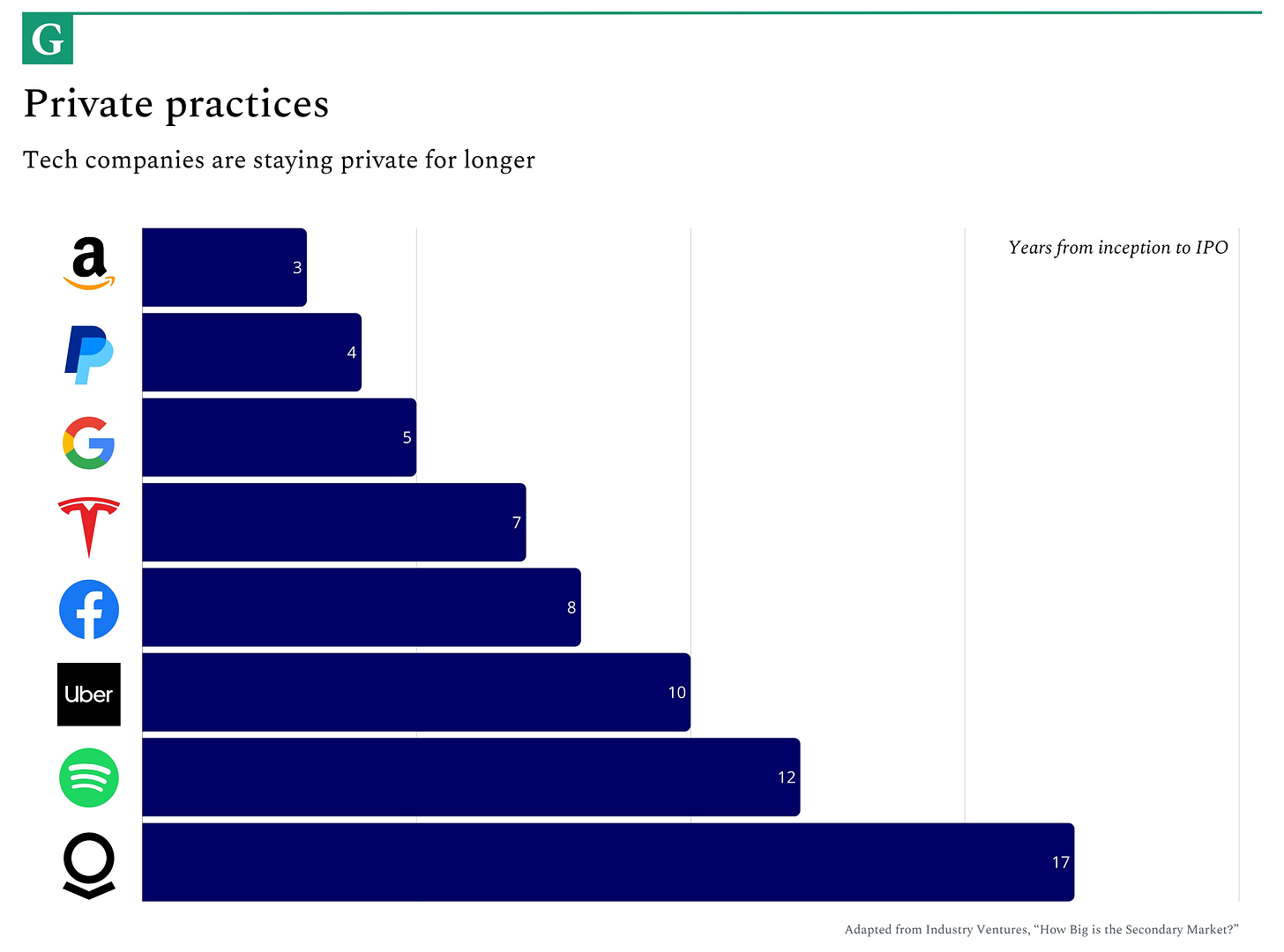 The SEC used to have a rule that if you had over 500 external shareholders, you had to go public. If you look at the history of Silicon Valley, many high-growth startups historically went public within a few years of hyper-growth.